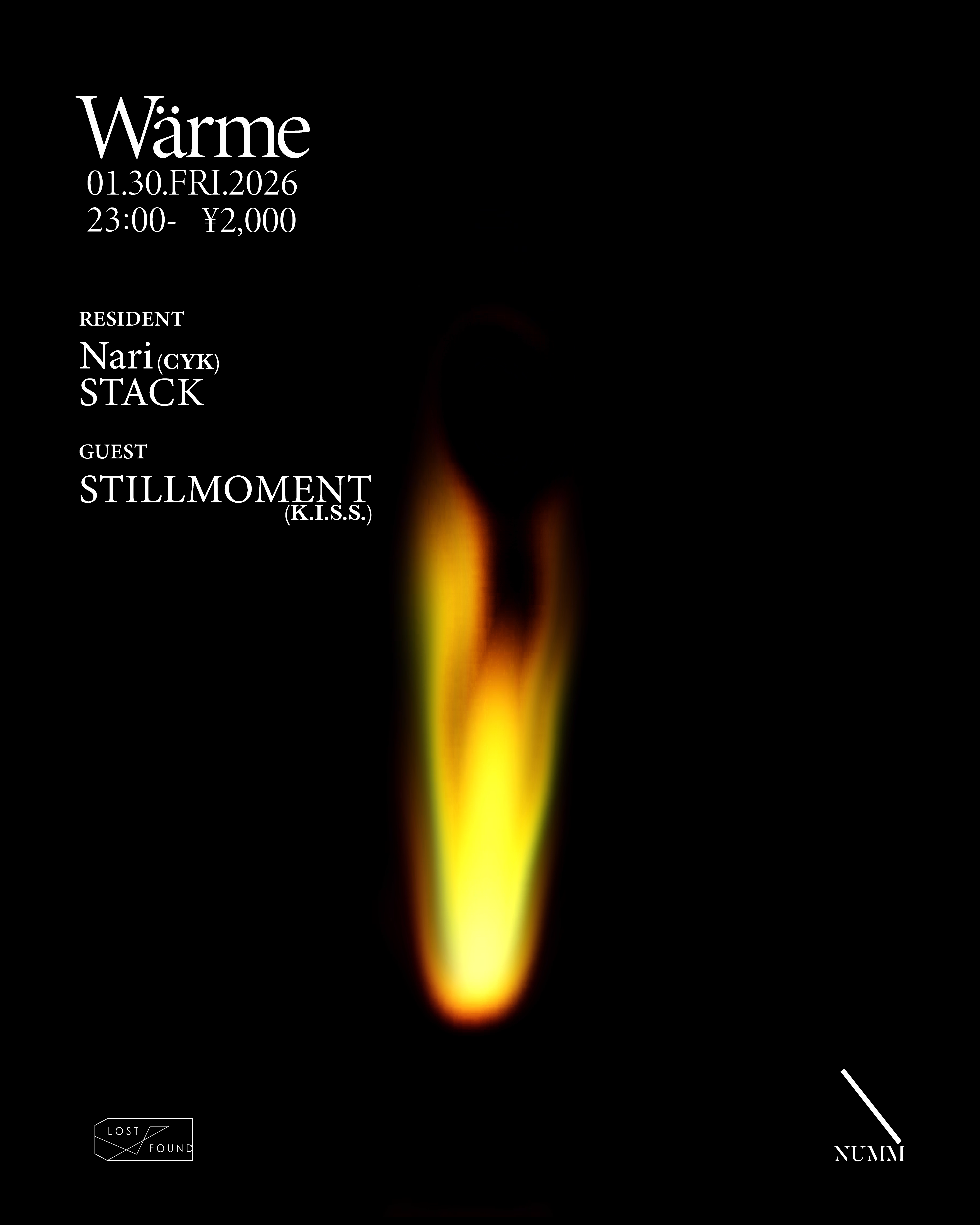 Back to Basicsというキーワードのもと、ドイツ語で「熱、暖かさ」を意味するタイトルWärme(ヴェルメ)が提供するのはただの音楽体験ではありません。都内屈指のサウンドシステムを誇る青山NUMMにて、アナログ・サウンドの温かみとクラブ本来の魅力を融合させ、ここでしか響かない音の温もりの再発見です。